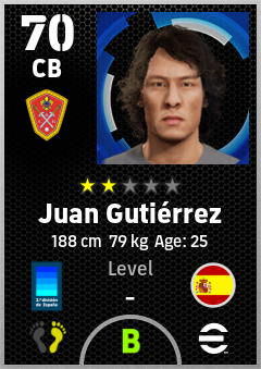 . Juan Gutiérrez is a Center Back footballer from Spain who plays for Miranda De Ebro Rn in eFootball 2026.