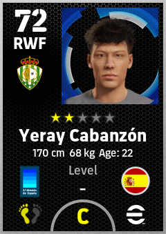 . Yeray Cabanzón is a Right Wing Forward footballer from Spain who plays for Santander Vb in eFootball 2026.