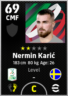 . Nermin Karić is a Center Midfielder footballer from Sweden who plays for Entella Ba in eFootball 2026.
