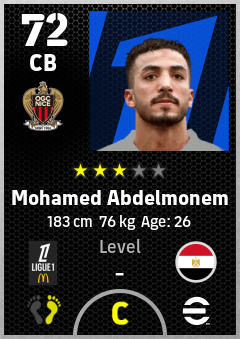 . Mohamed Abdelmonem is a Center Back footballer from Egypt who plays for Ogc Nice in eFootball 2026.