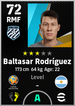 . Baltasar Rodríguez is a Right Midfielder footballer from Argentina who plays for Avellaneda Ab in eFootball 2026.