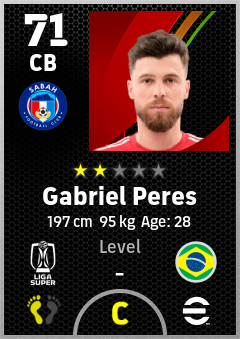 . Gabriel Peres is a Center Back footballer from Brazil who plays for Sabah Fc in eFootball 2026.