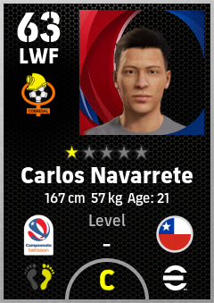 . Carlos Navarrete is a Left Wing Forward footballer from Chile who plays for El Salvador Bn in eFootball 2026.