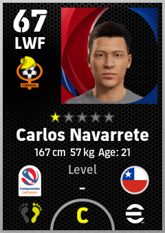 . Carlos Navarrete is a Left Wing Forward footballer from Chile who plays for El Salvador Bn in eFootball 2026.