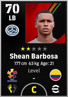 . Shean Barbosa is a Left Back footballer from Colombia who plays for Tolima Ra in eFootball 2026.