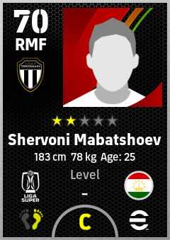. Shervoni Mabatshoev is a Right Midfielder footballer from Tajikistan who plays for Terengganu Fc in eFootball 2026.