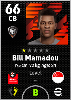 . Bill Mamadou is a Center Back footballer from Singapore who plays for Nakhonratchasima Fc in eFootball 2026.