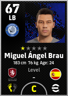 . Miguel Ángel Brau is a Left Back footballer from Spain who plays for Coventry B in eFootball 2026.