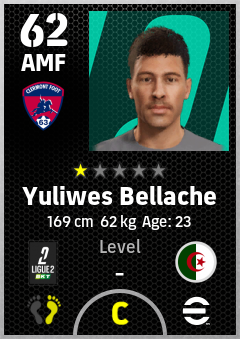 . Yuliwes Bellache is a Attacking Midfielder footballer from Algeria who plays for Clermont Foot 63 in eFootball 2026.