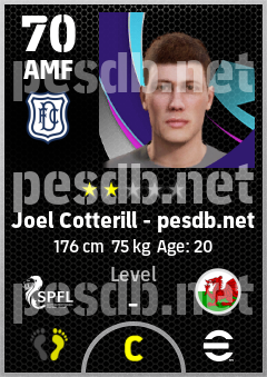 . Joel Cotterill is a Attacking Midfielder footballer from Wales who plays for Dundee Fc in eFootball 2026.