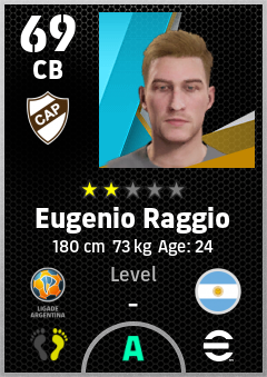 . Eugenio Raggio is a Center Back footballer from Argentina who plays for Vicente López M in eFootball 2026.