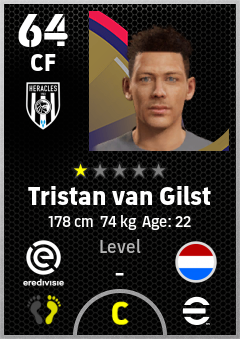 . Tristan Van Gilst is a Center Forward footballer from Netherlands who plays for Heracles Almelo in eFootball 2026.