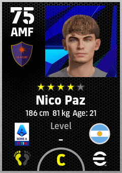 . Nico Paz is a Attacking Midfielder footballer from Argentina who plays for Como 1907 in eFootball 2026.
