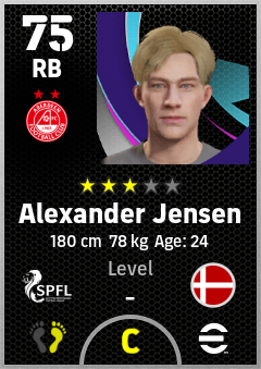 . Alexander Jensen is a Right Back footballer from Denmark who plays for Aberdeen Fc in eFootball 2026.