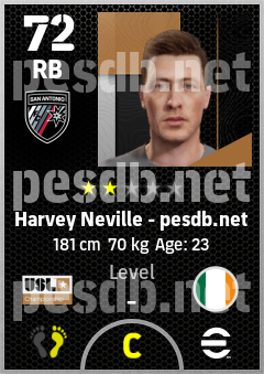 . Harvey Neville is a Right Back footballer from Republic Of Ireland who plays for San Antonio Fc in eFootball 2026.