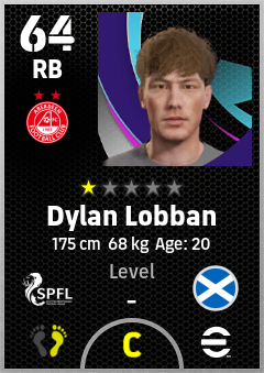 . Dylan Lobban is a Right Back footballer from Scotland who plays for Aberdeen Fc in eFootball 2026.