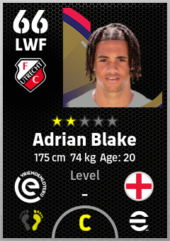. Adrian Blake is a Left Wing Forward footballer from England who plays for Fc Utrecht in eFootball 2026.