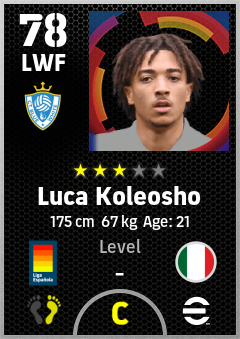 . Luca Koleosho is a Left Wing Forward footballer from Italy who plays for Llobregat Ab in eFootball 2026.