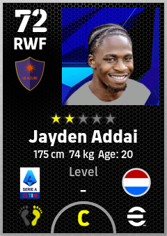 . Jayden Addai is a Right Wing Forward footballer from Netherlands who plays for Como 1907 in eFootball 2026.