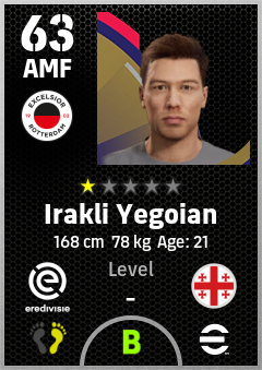 . Irakli Yegoian is a Attacking Midfielder footballer from Georgia who plays for Excelsior Rotterdam in eFootball 2026.