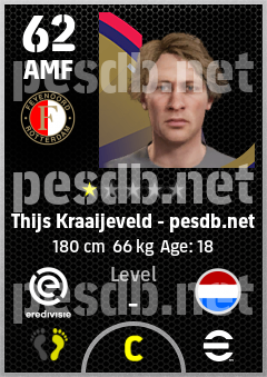 . Thijs Kraaijeveld is a Attacking Midfielder footballer from Netherlands who plays for Feyenoord in eFootball 2026.