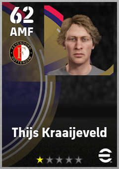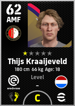 . Thijs Kraaijeveld is a Attacking Midfielder footballer from Netherlands who plays for Feyenoord in eFootball 2026.