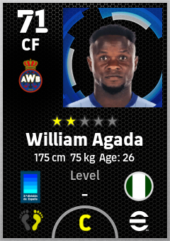 . William Agada is a Center Forward footballer from Nigeria who plays for Zaragoza Ba in eFootball 2026.