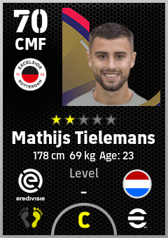 . Mathijs Tielemans is a Center Midfielder footballer from Netherlands who plays for Excelsior Rotterdam in eFootball 2026.
