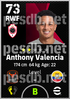 . Anthony Valencia is a Right Wing Forward footballer from Ecuador who plays for Antwerp Rw in eFootball 2026.
