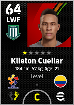 . Klieton Cuellar is a Left Wing Forward footballer from Colombia who plays for Cali Vb in eFootball 2026.
