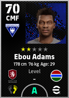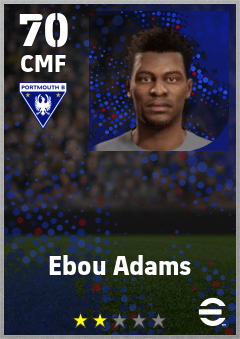 . Ebou Adams is a Center Midfielder footballer from The Gambia who plays for Portsmouth B in eFootball 2026.