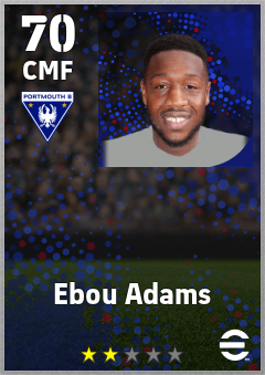 . Ebou Adams is a Center Midfielder footballer from The Gambia who plays for Portsmouth B in eFootball 2026.