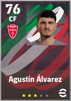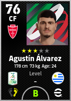 . Agustín Álvarez is a Center Forward footballer from Uruguay who plays for Monza Rb in eFootball 2026.