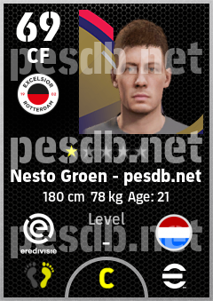 . Nesto Groen is a Center Forward footballer from Netherlands who plays for Excelsior Rotterdam in eFootball 2026.