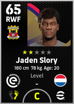 . Jaden Slory is a Right Wing Forward footballer from Netherlands who plays for Go Ahead Eagles in eFootball 2026.
