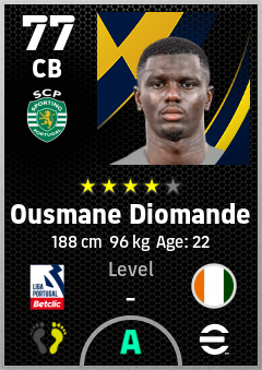 . Ousmane Diomande is a Center Back footballer from Côte D'ivoire who plays for Sporting Cp in eFootball 2026.