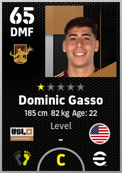 . Dominic Gasso is a Defensive Midfielder footballer from United States who plays for Detroit City Fc in eFootball 2026.