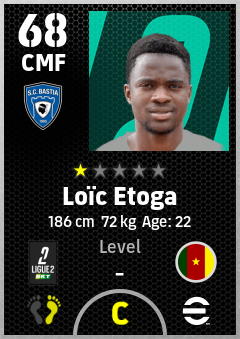 . Loïc Etoga is a Center Midfielder footballer from Cameroon who plays for Sc Bastia in eFootball 2026.