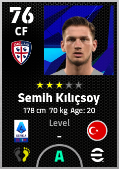 . Semih Kılıçsoy is a Center Forward footballer from Türkiye who plays for Cagliari Rb in eFootball 2026.