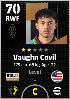 . Vaughn Covil is a Right Wing Forward footballer from United States who plays for Las Vegas Lights Fc in eFootball 2026.