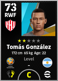 . Tomás González is a Right Wing Forward footballer from Argentina who plays for Santa Fe Rb in eFootball 2026.