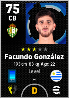 . Facundo González is a Center Back footballer from Uruguay who plays for Santander Vb in eFootball 2026.