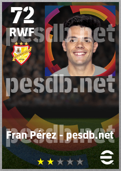 . Fran Pérez is a Right Wing Forward footballer from Spain who plays for Vallecas Br in eFootball 2026.