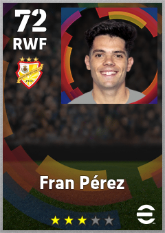 . Fran Pérez is a Right Wing Forward footballer from Spain who plays for Vallecas Br in eFootball 2026.