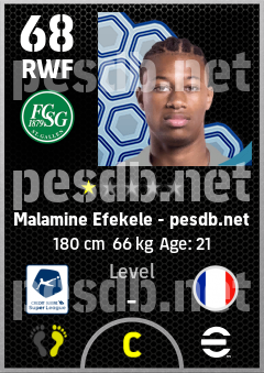 . Malamine Efekele is a Right Wing Forward footballer from France who plays for Sankt Gallen Gw in eFootball 2026.