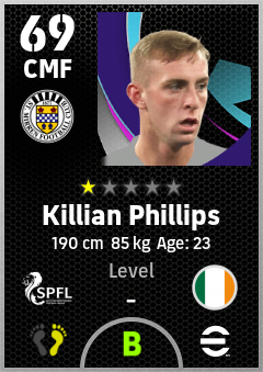 . Killian Phillips is a Center Midfielder footballer from Republic Of Ireland who plays for St. Mirren Fc in eFootball 2026.