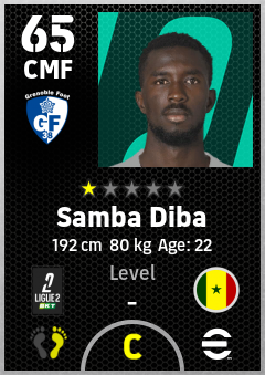 . Samba Diba is a Center Midfielder footballer from Senegal who plays for Grenoble Foot 38 in eFootball 2026.