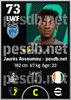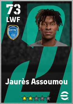 . Jaurès Assoumou is a Left Wing Forward footballer from Côte D'ivoire who plays for Estac Troyes in eFootball 2026.