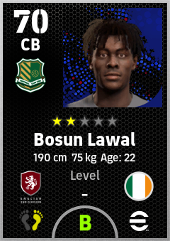 . Bosun Lawal is a Center Back footballer from Republic Of Ireland who plays for Stoke Rw in eFootball 2026.