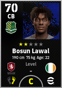 . Bosun Lawal is a Center Back footballer from Republic Of Ireland who plays for Stoke Rw in eFootball 2026.